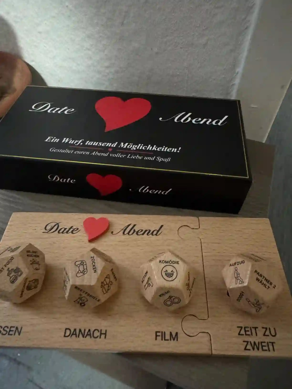 Ich habe das Spiel für meine Partnerin und mich gekauft, und es hat unsere Date Nights abwechlubgsreifer gemacht! Die Würfel bringen kreative, lustige und romantische Ideen ins Spiel, die uns aus der Routine geholt haben. Jede Runde ist anders, und wir haben viel gelacht und uns gleichzeitig noch näher kennengelernt. Es eignet sich perfekt als Geschenk zum Jahrestag, Valentinstag oder einfach zwischendurch, um dem Alltag zu entfliehen.